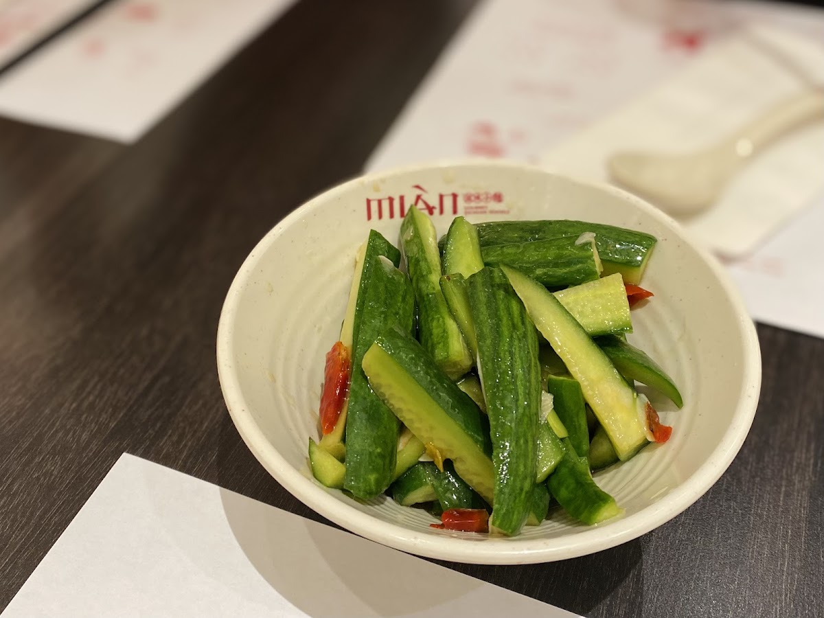 One of the restaurant's highlights is the tomato & beef noodles (番茄牛肉面), a standout dish featuring tender beef and perfectly balanced flavors of juicy tomatoes. This dish offers a comforting yet fresh taste that pairs wonderfully with the savory broth. Another crowd favorite is the pickled cucumber (爽口黄瓜), which adds a delightful crunch and a touch of tanginess to your meal, making it a great side dish to complement your noodles.